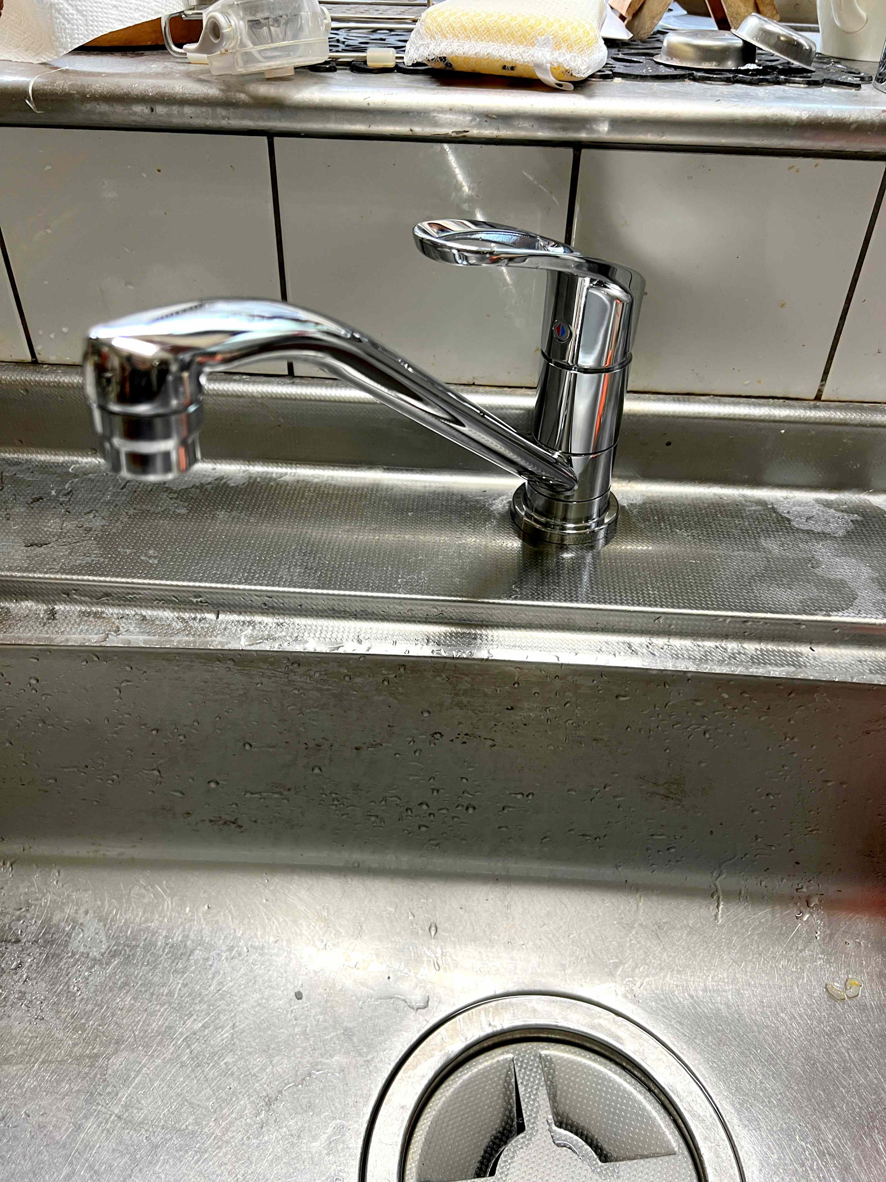 新しい水栓はレバー操作が軽く、手が濡れていてもサッと使えて